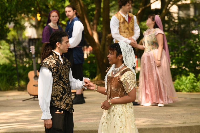 Production Staff: Beth Wolf* (Director), Hailey Piorek (Stage Manager), Ebby Offord* (Assistant Director), Elliott Puckette (Assistant Stage Manager), Kristina Gramillo (Production Manager), Francesca Butera (Box Office Manager), Sammi Grant (Vocal Coach), Meredith Ernst Maryfield* (Text Coach), Jack Morsovillo* (Composer/Music Director), Isa Noe (Prop and Scenic Designer), Rachel Sypniewski (Costume Designer), Sheryl Williams (Intimacy Director)